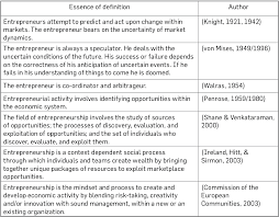 According to this concept entrepreneurship as a creative activity and it is the function of progressive leadership different concepts of entrepreneurship. Entrepreneurs act as managers and oversee the launch and growth of an enterprise. Knight had made a clear distinction between the risk and uncertainty. Michael palner writes the word entrepreneur carries a deluge of definitional and operational ambiguity.